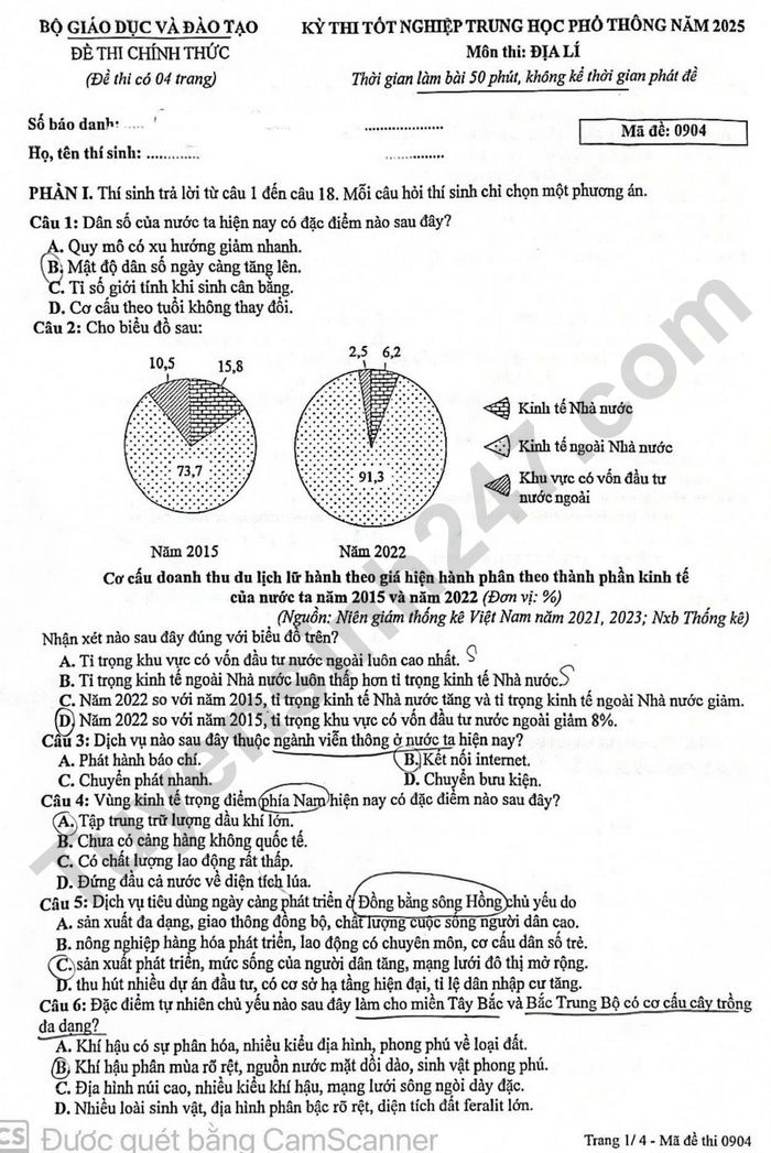 Đề thi môn Địa mã đề 0904 - tốt nghiệp THPT 2025