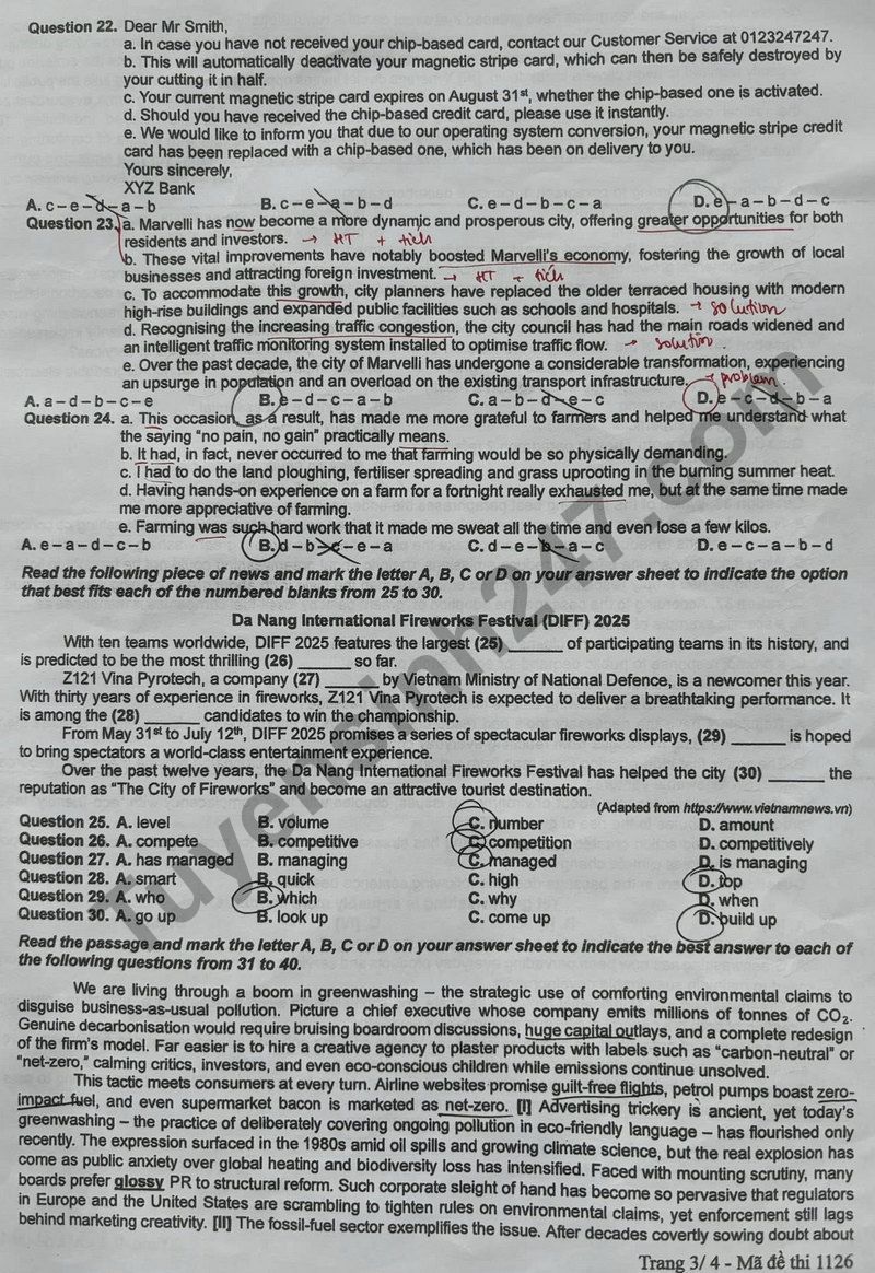 Đáp án đề thi tốt nghiệp THPT 2025 môn Anh - mã đề 1126