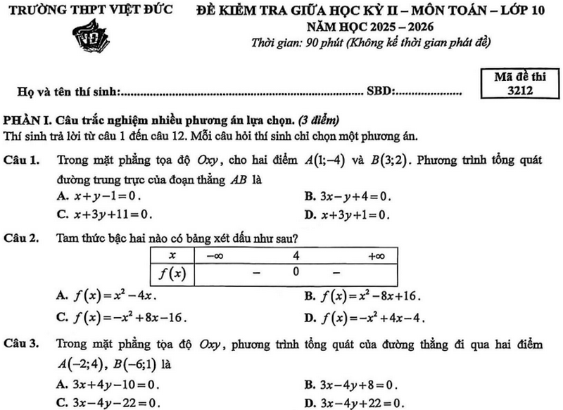 Đề giữa học kỳ 2 Toán 10 trường THPT Việt Đức năm 2026 Câu 2. (1 điểm) Một công ty du lịch dự định tổ chức một tour Hà Nội – Ninh Bình. Công ty dự tính là nếu giá tour là 2000000 đồng thì sẽ có 200 người tham gia. Để khuyến khích mọi người tham gia, công ty quyết định giảm giá tour và nhận thấy rằng cứ mỗi lần giảm giá tour thêm 100000 đồng thì sẽ có thêm 20 người nữa tham gia. Hỏi công ty phải bán giá tour là bao nhiêu để doanh thu từ tour Hà Nội – Ninh Bình là lớn nhất?