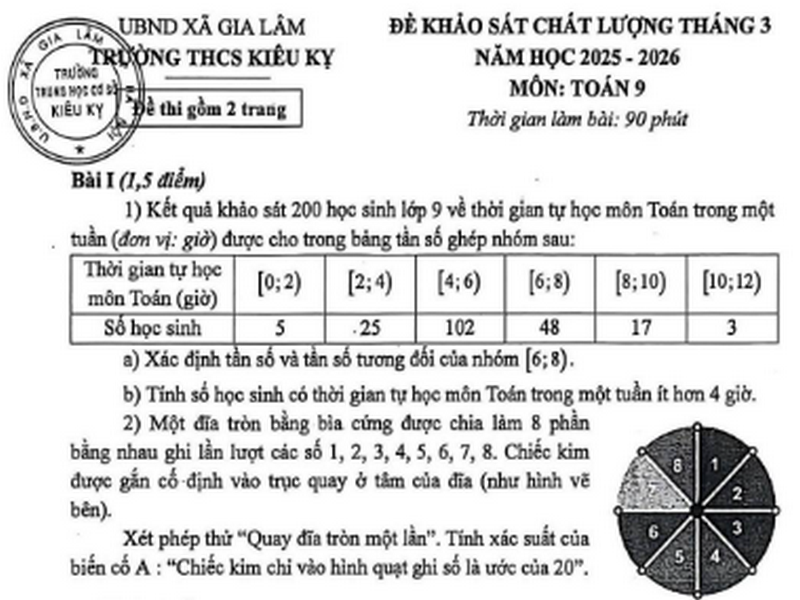 Đề khảo sát Toán 9 trường THCS Kiêu Kỵ năm 2026 Bài IV (4.0 điểm) Một chiếc quạt giấy khi xòe hết ra có dạng nửa hình tròn bán kính 28 cm, phần không dán giấy của chiếc quạt có dạng nửa hình tròn đường kính 16 cm. Tính diện tích phần giấy của chiếc quạt. (Làm tròn kết quả đến hàng trăm của cm^2)