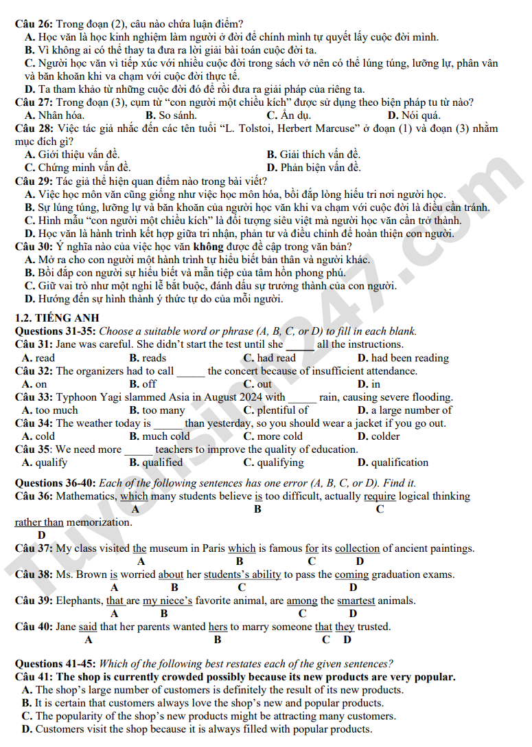 Theo TTHN DÀNH CHO 2K8 – ÔN THI ĐÁNH GIÁ NĂNG LỰC 2026!Bài thi Đánh giá năng lực 2026 thay đổi toàn bộ từ cấu trúc bài thi, các dạng câu hỏi,.... mà bạn chưa biết phải ôn tập như thế nào cho hiệu quả? không học môn đó thì làm bài ra sao? Bạn cần phương pháp ôn tập và làm bài thi từ những người am hiểu về kì thi và đề thi? Bạn cần thầy cô đồng hành suốt quá trình ôn luyện? Vậy thì hãy xem ngay lộ trình ôn thi bài bản tại ON.TUYENSINH247.COM: