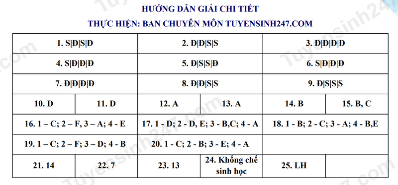 Đáp án đề minh họa môn Sinh kỳ thi V-SAT 2025