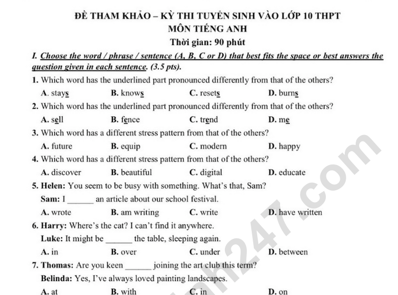 Đề minh họa vào lớp 10 TPHCM 2026 môn Anh