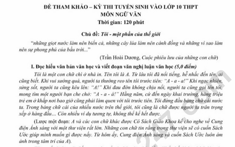 Đề minh họa vào lớp 10 TPHCM 2026 môn Văn Câu 2 (4,0 điểm): Em hãy chọn một trong hai yêu cầu sau để thực hiện: 1. Viết bài văn nghị luận về thái độ luôn coi mình là quan trọng nhất trong mối quan hệ với mọi người; từ đó, đề xuất giải pháp để giúp các bạn trẻ sống hài hòa với mọi người. 2. Viết bài văn nghị luận về thái độ luôn coi con người là quan trọng nhất trong mối quan Đáp án đề minh họa vào lớp 10 TPHCM 2026 môn Văn Theo TTHN DÀNH CHO 2K11 - LỘ TRÌNH ÔN THI VÀO LỚP 10 Tham khảo Khoá học lớp 9 - Lộ trình UP10 tại Tuyensinh247: Xem thêm thông tin và nhận tư vấn miễn phí - TẠI ĐÂY |