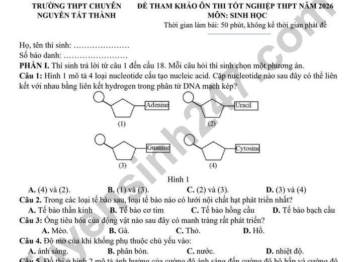 >>> Xem thêm lời giải chi tiết các đề thi thử Tốt nghiệp THPT 2026 môn Sinh của các Sở GD, các trường THPT trên cả nước TẠI ĐÂY Theo TTHN 🔥 2K9 CHÚ Ý! LUYỆN THI TN THPT - ĐÁNH GIÁ NĂNG LỰC - ĐÁNH GIÁ TƯ DUY!