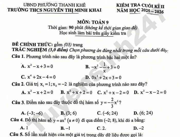 Đề thi cuối kì 2 năm 2026 THCS Nguyễn Thị Minh Khai - môn Toán 9 Câu 14. (1,0 điểm) Để chuẩn bị cho dự án "Bầu cử số qua mã QR" thử nghiệm tại Liên đội, một trường THCS dự định thuê một số máy tính bảng với tổng chi phí là 2 400 000 đồng. Khi ký hợp đồng, nhờ có chính sách hỗ trợ giáo dục thông minh, đơn vị cung cấp đã giảm giá thuê mỗi máy là 20 000 đồng so với báo giá ban đầu. Nhờ vậy, với cùng số tiền trên, nhà trường đã thuê thêm được 4 máy để tăng tốc độ quét mã, giúp học sinh không phải chờ đợi lâu. Hoi theo dự định ban đầu, nhà trường kế hoạch thuê bao nhiêu máy tính bảng?