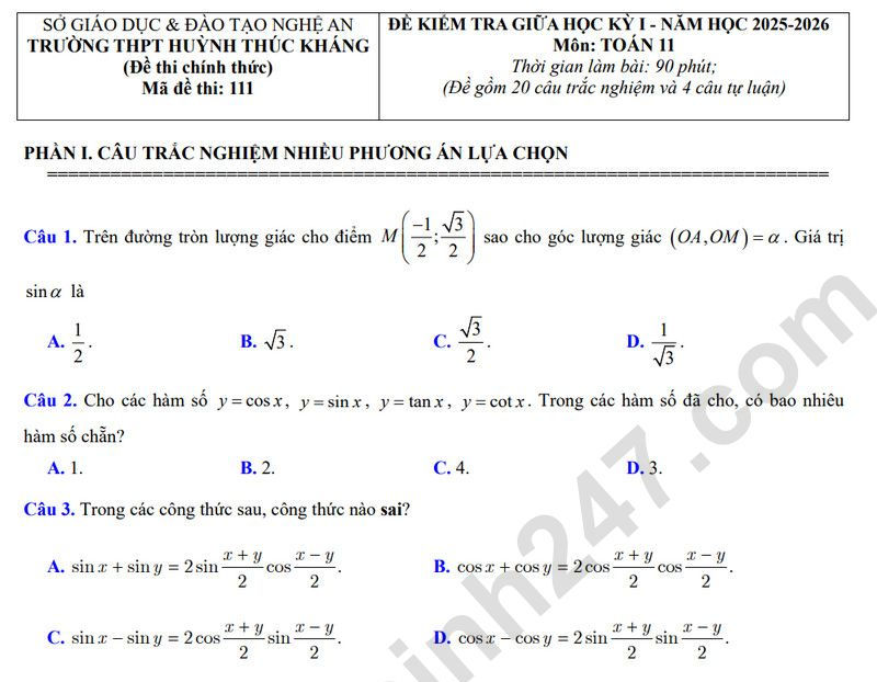 Đề thi giữa kì 1 lớp 11 môn Toán 2025 - THPT Huỳnh Thúc Kháng Câu 11. Tìm khẳng định đúng trong các khẳng định sau. A. Nếu một đường thẳng song song với một mặt phẳng thì nó song song với một đường thẳng nào đó nằm trong mặt phẳng đó. B. Trong không gian, hai đường thẳng cùng vuông góc với đường thẳng thứ ba thì hai đường thẳng đó song song với nhau. C. Nếu hai mặt phẳng cùng song song với mặt phẳng thứ ba thì chúng song song với nhau. D. Nếu ba mặt phẳng phân biệt đôi một cắt nhau theo ba giao tuyến thì ba giao tuyến đó phải đồng quy.