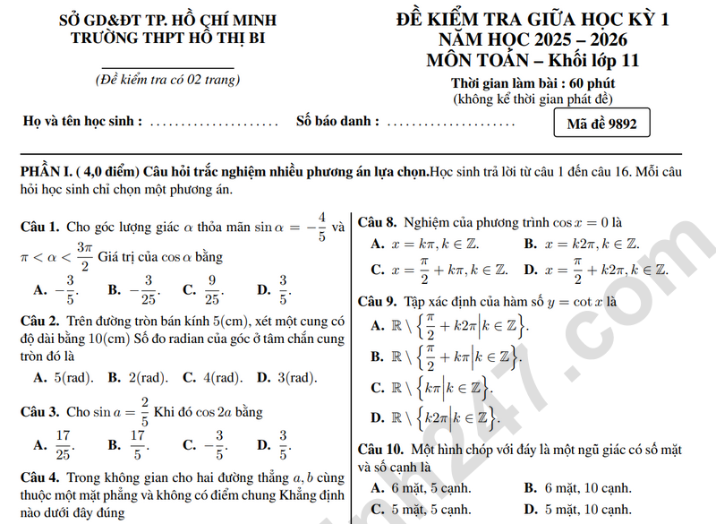 Đề thi giữa kì 1 lớp 11 môn Toán 2025 - Trường THPT Hồ Thị Bi Câu 3. Cho hình chóp S.ABCD có đáy là hình bình hành ABCD. Gọi G là trung điểm của AB và G là trọng tâm của tam giác SAB. Lấy điểm M trên cạnh AD, điểm N trên cạnh HC sao cho AD = 3AM, HC = 3HN. a) Tìm giao tuyến của mặt phẳng (SAC) và (SBD). b) Gọi P là giao điểm của NG và mặt phẳng (SAD). Chứng minh G là trung điểm của P N.