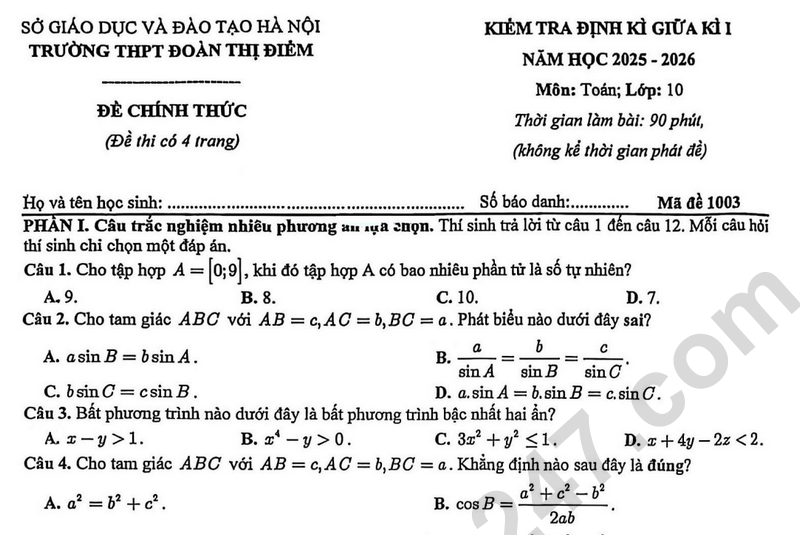 Đề thi giữa kì 1 lớp 10 môn Toán 2025 - THPT Đoàn Thị Điểm Câu 12. Cho mệnh đề P: "Tam giác ABC cân tại A” và mệnh đề Q: “Tam giác ABC có hai góc bằng nhau”. Mệnh đề P ⇒Q là A. ‘Nếu tam giác ABC có hai góc bằng nhau thì tam giác ABC cân tại A.” B. "Tam giác ABC cân tại A khi và chỉ khi tam giác ABC có hai góc bằng nhau.” C. "Nếu tam giác ABC cân tại A thì tam giác ABC có hai góc bằng nhau." D. "Tam giác ABC cân tại A nếu và chỉ nếu tam giác ABC có hai góc bằng nhau." Theo TTHN NẮM CHẮC KIẾN THỨC, BỨT PHÁ ĐIỂM 9,10 LỚP 1 - LỚP 12 CÙNG TUYENSINH247! Nếu em đang: