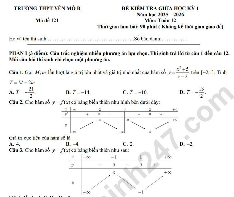 Đề thi giữa kì 1 lớp 12 môn Toán 2025 - THPT Yên Mô Câu 3. Một công ty sản xuất dụng cụ thể thao nhận được một đơn đặt hàng sản xuất 8000 quả bóng tennis. Công ty này sở hữu một số máy móc, mỗi máy có thể sản xuất 30 quả bóng trong một giờ. Chi phí thiết lập các máy này là 200 nghìn đồng cho mỗi máy. Khi được thiết lập, hoạt động sản xuất sẽ hoàn toàn diễn ra tự động dưới sự giám sát. Số tiền phải trả cho người giám sát là 192nghìn đồng một giờ. Số máy móc công ty nên sử dụng là bao nhiêu để chi phí hoạt động là thấp nhất?