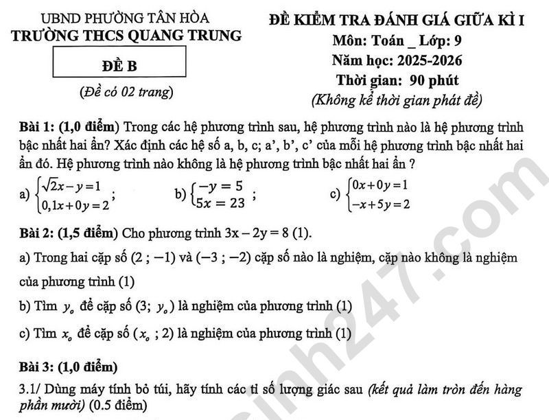 Đề thi giữa kì 1 lớp 9 môn Toán 2025 - THCS Quang Trung Bài 5: (1,0 điểm) Lúc 6 giờ sáng, Mẹ bạn Lan đưa bạn đi học từ nhà đến trường bằng xe máy, đi được nửa quãng đường với vận tốc 15 km/h thì nghỉ 12 phút để ăn sáng. Để đến trường đúng giờ quy định, Mẹ bạn Lan phải tăng vận tốc thêm 15km/h trên nửa quãng đường còn lại. Hỏi bạn Lan đến trường lúc mấy giờ ?