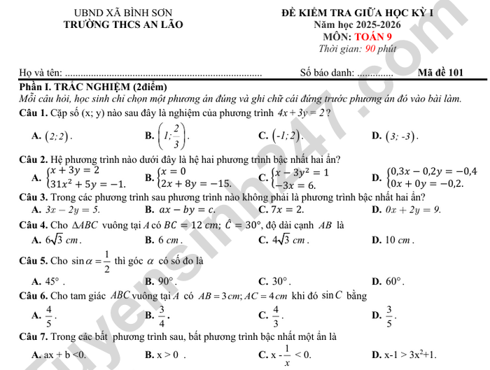 | Đề thi giữa kì 1 Toán 9 THCS An Lão 2025 Bạn Nam đi xe đạp từ A đến B phải leo qua một con dốc ACB cao 12m với vận tốc trung bình khi lên dốc là 6km/h, vận tốc trung bình khi xuống dốc là 12 km/h. Biết rằng đoạn đường lên dốc AC nghiêng một góc 6° và đoạn đường xuống dốc CB nghiêng một góc 4° so với phương ngang. a) Tính quãng đường bạn Nam đi từ A đến B? (làm tròn đến phút). b) Tính thời gian bạn Nam đi xe đạp từ đến B ? (làm tròn đến hàng đơn vị).