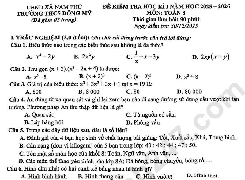 Đề thi HK1 lớp 8 môn Toán 2025 - THCS Đông Mỹ Bài 5 (0,5 điểm): Bác Toàn có một mảnh đất giáp với bờ sông. Bác dự định tính mua một tấm lưới sắt dài 240 (m) để rào một khu đất trồng rau có dạng hình chữ nhật ABCD (như hình vẽ). Biết rằng, bác Toàn chỉ rào ba mặt của khu đất, mặt còn lại giáp với bờ sông từ C đến D bác không rào để tiện lấy nước từ dưới sông lên tưới rau. Hỏi bác Toàn phải rào khu đất trồng rau với kích thước như thế nào để diện tích khu đất trồng rau là lớn nhất? Khi đó diện tích lớn nhất của khu đất trồng rau là bao nhiêu?