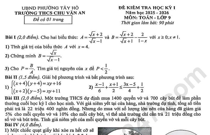 Đề thi HK1 lớp 9 môn Toán 2025 - THCS Chu Văn An Bài V (0,5 điểm). Tại cửa hàng 4 kinh doanh điện thoại, một loại điện thoại có giá nhập vào một chiếc là 14000000 đồng và bán ra với giá 16000000 đồng. Với giá bán như trên thì số lượng điện thoại bán được dự kiến là 50 chiếc/tháng. Để kích thích tiêu thụ dòng điện thoại này, chủ cửa hàng dự định giảm giá bán và khảo sát thấy rằng cứ mỗi lần giảm 100000 đồng trên một chiếc thì số lượng điện thoại bán ra tăng thêm 5 chiếc/tháng. Hỏi cửa hàng phải giảm giá mỗi chiếc điện thoại bao nhiêu tiền để sau khi giảm giá, lợi nhuận thu được là cao nhất?