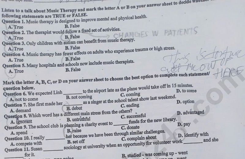 Đề thi học kì 1 lớp 10 môn Anh năm 2025 - THPT Nguyễn Thị Minh Khai