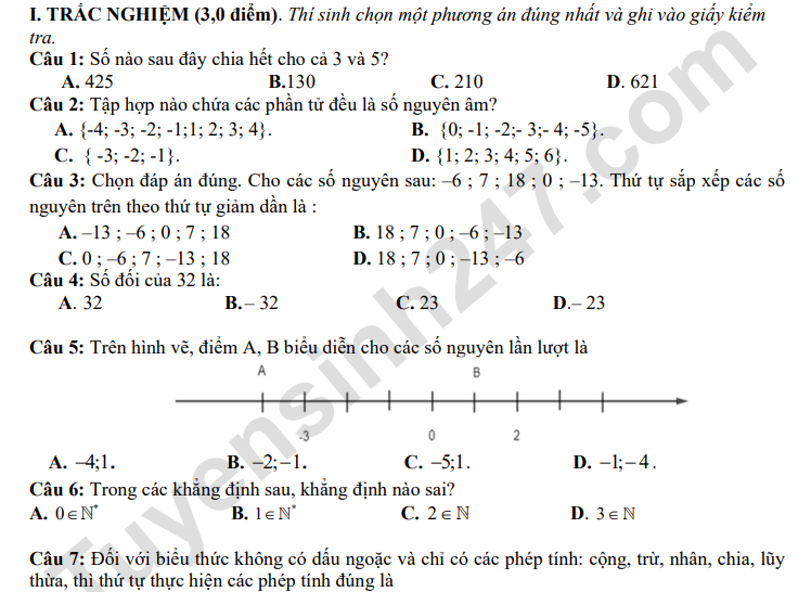 Đề thi học kì 1 lớp 6 năm 2025 môn Toán - THCS Lê Quang Cường Bài 3 (1,0 điểm). Một lớp học có số học sinh nằm trong khoảng 40 đến 56 em. Mỗi lần ra xếp thành 3 hàng; 4 hàng hay 6 hàng đều vừa đủ không thừa. Hỏi lớp có bao nhiêu học sinh. Bài 4 (1,5 điểm). Biểu đồ tranh sau biểu diễn số lượng học sinh lớp 6A sử dụng các phương tiện khác nhau để đi đến trường.