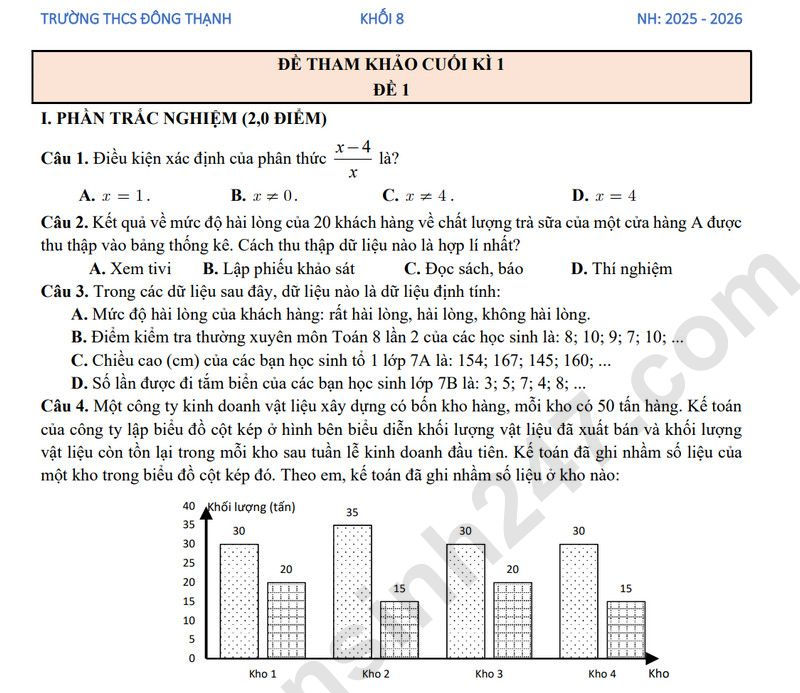 Đề thi học kì 1 lớp 8 môn Toán 2025 - trường THCS Đông Thạnh (Tham khảo) Bài 3. (1,5 điểm) Năm 2020, Việt Nam xuất khẩu (ước đạt) 6,15 triệu tấn gạo . Biểu đồ hình quạt tròn bên biểu diễn khối lượng xuất khẩu của mỗi loại gạo trong tổng số gạo xuất khẩu (tính theo tỉ số phần trăm). a) Tính khối lượng gạo trắng xuất khẩu năm 2020 (kết quả làm tròn đến hàng phần mười) b) Khối lượng Gạo trắng xuất khẩu của nước ta nhiều hơn tổng khối lượng xuất khẩu của Gạo nếp và Gạo khác là bao nhiêu tấn?