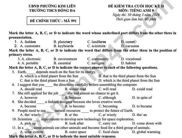 Đề thi học kì 2 lớp 9 môn Anh 2026 - THCS Đống Đa 18. Choose the sentence that most appropriately ends the text (in Question 17). A. Therefore, careful preparation can lead to greater job satisfaction in the future. B. However, some employees change their jobs several times each year. C. For example, many workers wear uniforms in their workplaces. D. In contrast, office jobs usually require computer skills.