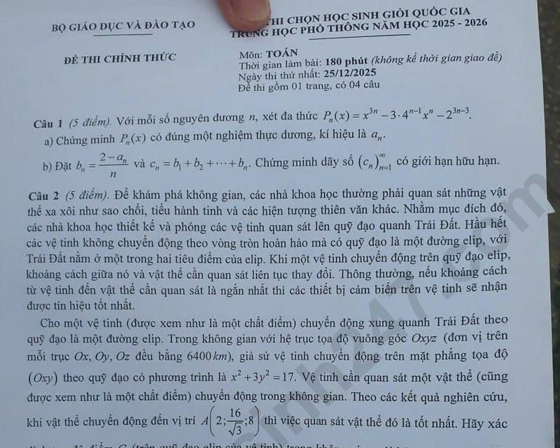Đề thi HSG Quốc gia môn Toán năm 2025