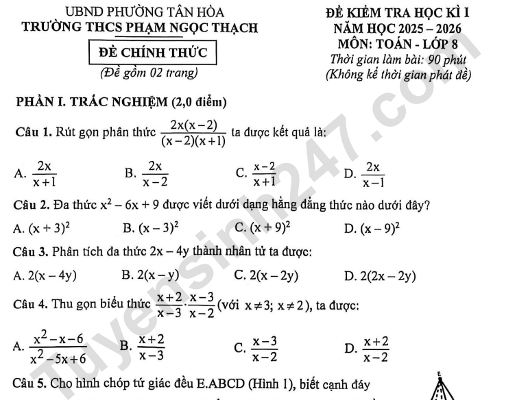 Đề thi kì 1 lớp 8 môn Toán 2025 - THCS Phạm Ngọc Thạch Bài 5. (1,0 điểm) Anh Khang vay ngân hàng Vietinbank 80 triệu đồng để sửa nhà với lãi suất 10% một năm. a) Hỏi sau một năm anh Khang phải trả cho ngân hàng bao nhiêu tiền cả gốc lẫn lãi? b) Sau ba năm, anh Nam mới đủ tiền để trả gốc lẫn lãi cho ngân hàng. Biết rằng sau một năm, tiền lãi được cộng dồn vào tiền vay ban đầu làm số tiền vay mới để tính lãi suất cho năm sau. Hỏi anh Khang phải trả cho ngân hàng Vietinbank bao nhiêu tiền cả gốc lẫn lãi? Biết rằng lãi suất năm sau sẽ hơn năm trước 0,5%.