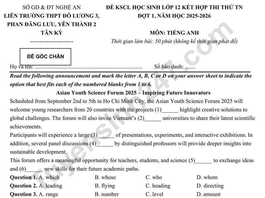 >>> Xem thêm lời giải chi tiết các đề thi thử Tốt nghiệp THPT 2026 môn Anh của các Sở GD, các trường THPT trên cả nước TẠI ĐÂY Theo TTHN 🔥 2K8 CHÚ Ý! LUYỆN THI TN THPT - ĐÁNH GIÁ NĂNG LỰC - ĐÁNH GIÁ TƯ DUY!