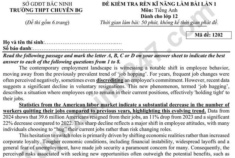 Đề thi thử môn Anh tốt nghiệp THPT 2026 - THPT Chuyên Bắc Giang
