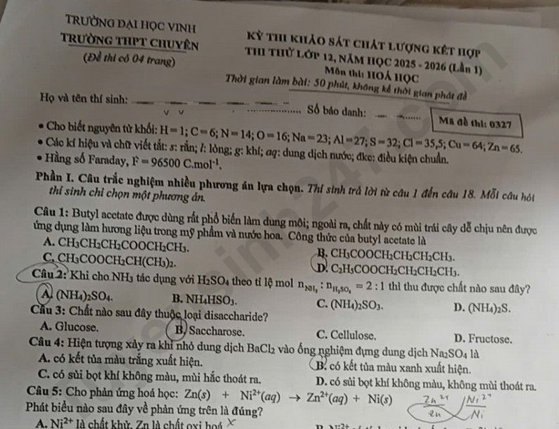 >>> Xem thêm lời giải chi tiết các đề thi thử Tốt nghiệp THPT 2026 môn Hóa của các Sở GD, các trường THPT trên cả nước TẠI ĐÂY Theo TTHN