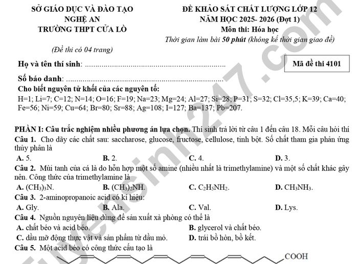 >>> Xem thêm lời giải chi tiết các đề thi thử Tốt nghiệp THPT 2026 môn Hóa của các Sở GD, các trường THPT trên cả nước TẠI ĐÂY Theo TTHN 🔥 2K8 CHÚ Ý! LUYỆN THI TN THPT - ĐÁNH GIÁ NĂNG LỰC - ĐÁNH GIÁ TƯ DUY!