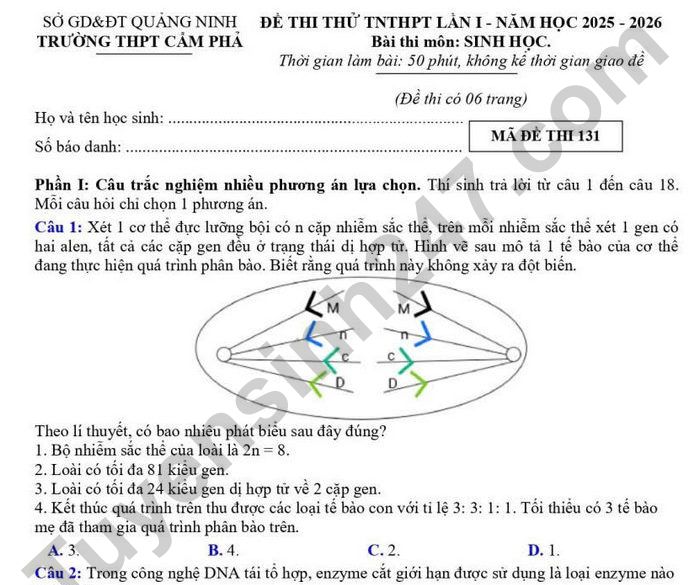 >>> Xem thêm lời giải chi tiết các đề thi thử Tốt nghiệp THPT 2026 môn Sinh của các Sở GD, các trường THPT trên cả nước TẠI ĐÂY Theo TTHN 🔥 2K8 CHÚ Ý! LUYỆN THI TN THPT - ĐÁNH GIÁ NĂNG LỰC - ĐÁNH GIÁ TƯ DUY!