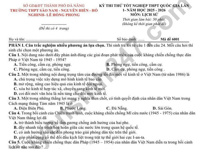 Đề thi thử môn Sử tốt nghiệp THPT 2026 - Liên trường Đà Nẵng (lần 1) Câu 1. Cho đoạn tư liệu sau đây: “Cách mạng tháng Tám năm 1945 ở nước ta giành được thắng lợi trong thời đại cách mạng vô sản. Nó phản ánh tính chất thời đại, mang lại những nhận thức mới mẻ và triệt để trong quan niệm cũng như giải pháp để giải quyết vấn đề độc lập dân tộc. Từ thắng lợi đó, nhận thức của chúng ta đã vượt qua những mâu thuẫn và hạn chế trong việc giải quyết vấn đề độc lập dân tộc theo lập trường phong kiến và tư sản”. (Ban chỉ đạo Tổng kết chiến tranh thuộc Bộ Chính trị, Chiến tranh cách mạng Việt Nam 1945 – 1975 thắng lợi và bài học, NXB Chính trị quốc gia, Hà Nội, 2000, trang 68). a) Cách mạng tháng Tám năm 1945 thắng lợi có ý nghĩa thực tiễn góp phần bổ sung lý luận của chủ nghĩa Mác – Lê nin về cách mạng giải phóng dân tộc ở các nước thuộc địa, phụ thuộc. b) Cách mạng tháng Tám năm 1945 ở Việt Nam đặt dưới sự lãnh đạo thống nhất của một chính đảng vô sản cầm quyển, có sự kết hợp đấu tranh vũ trang với chính trị. c) Thực tiễn Cách mạng tháng Tám năm 1945 ở Việt Nam diễn ra trên quy mô toàn quốc, đáp ứng được nguyện vọng số một của giai cấp công nhân và nông dân mà trước đó phong trào yêu nước theo lập trường tư sản chưa làm được.