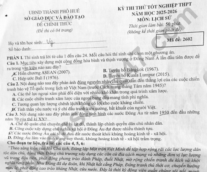 >>> Xem thêm lời giải chi tiết các đề thi thử Tốt nghiệp THPT 2026 môn Sử của các Sở GD, các trường THPT trên cả nước TẠI ĐÂY Theo TTHN 🔥 2K9 CHÚ Ý! LUYỆN THI TN THPT - ĐÁNH GIÁ NĂNG LỰC - ĐÁNH GIÁ TƯ DUY!