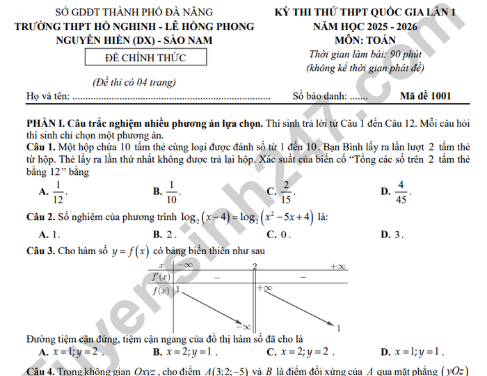 >>> Xem thêm lời giải chi tiết các đề thi thử Tốt nghiệp THPT 2026 môn Toán của các Sở GD, các trường THPT trên cả nước TẠI ĐÂY Theo TTHN 🔥 2K8 CHÚ Ý! LUYỆN THI TN THPT - ĐÁNH GIÁ NĂNG LỰC - ĐÁNH GIÁ TƯ DUY!