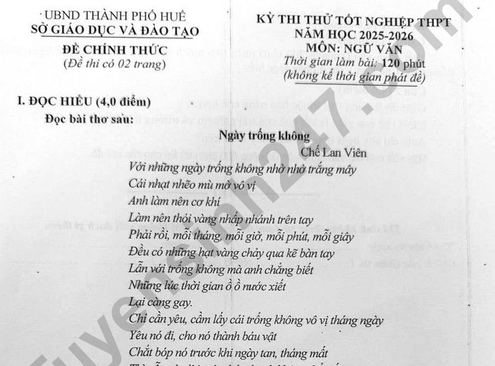 Đề thi thử môn Văn tốt nghiệp THPT 2026 - TP Huế