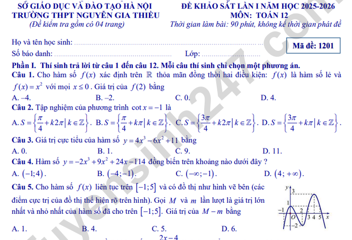 >>> Xem thêm lời giải chi tiết các đề thi thử Tốt nghiệp THPT 2026 môn Toán của các Sở GD, các trường THPT trên cả nước TẠI ĐÂY Theo TTHN 🔥 2K8 CHÚ Ý! LUYỆN THI TN THPT - ĐÁNH GIÁ NĂNG LỰC - ĐÁNH GIÁ TƯ DUY!