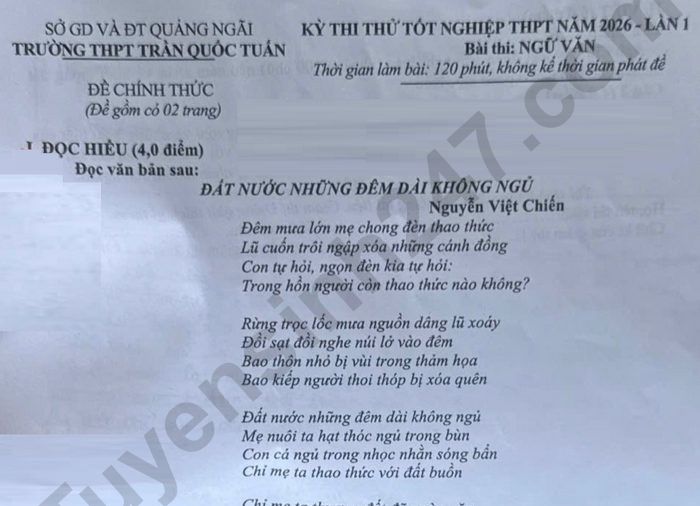 Đề thi thử TN THPT 2026 lần 1 môn Văn - THPT Trần Quốc Tuấn
