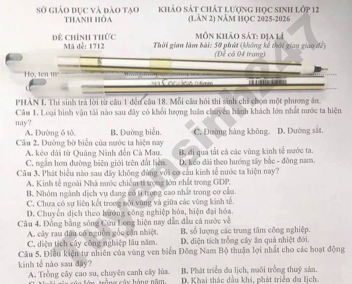 >>> Xem thêm lời giải chi tiết các đề thi thử Tốt nghiệp THPT 2026 môn Địa của các Sở GD, các trường THPT trên cả nước TẠI ĐÂY Theo TTHN 🔥 2K9 CHÚ Ý! LUYỆN THI TN THPT - ĐÁNH GIÁ NĂNG LỰC - ĐÁNH GIÁ TƯ DUY!