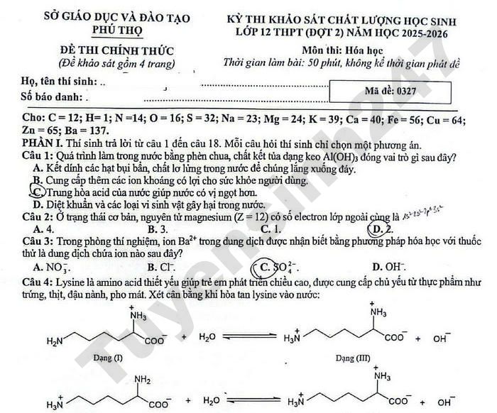 >>> Xem thêm lời giải chi tiết các đề thi thử Tốt nghiệp THPT 2026 môn Hóa của các Sở GD, các trường THPT trên cả nước TẠI ĐÂY Theo TTHN 🔥 2K9 CHÚ Ý! LUYỆN THI TN THPT - ĐÁNH GIÁ NĂNG LỰC - ĐÁNH GIÁ TƯ DUY!