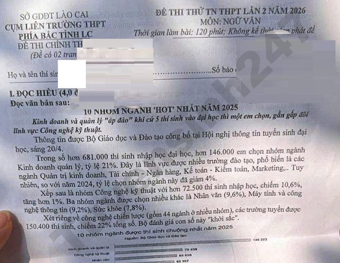 Đề thi thử TN THPT lần 2 năm 2026 môn Văn - Liên trường THPT phía Bắc tỉnh LC