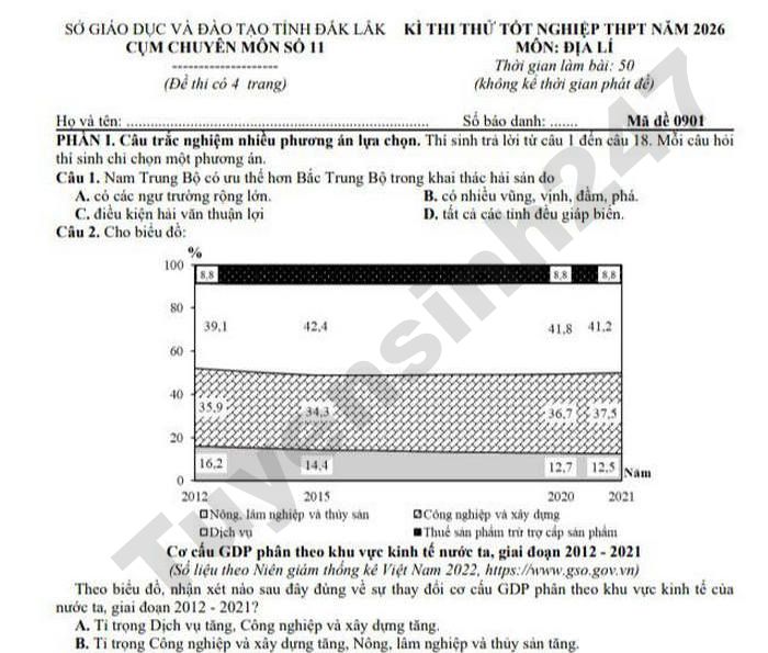 >>> Xem thêm lời giải chi tiết các đề thi thử Tốt nghiệp THPT 2026 môn Địa của các Sở GD, các trường THPT trên cả nước TẠI ĐÂY Theo TTHN 🔥 2K9 CHÚ Ý! LUYỆN THI TN THPT - ĐÁNH GIÁ NĂNG LỰC - ĐÁNH GIÁ TƯ DUY!