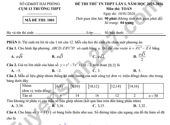 >>> Xem thêm lời giải chi tiết các đề thi thử Tốt nghiệp THPT 2026 môn Toán của các Sở GD, các trường THPT trên cả nước TẠI ĐÂY Theo TTHN 🔥 2K8 CHÚ Ý! LUYỆN THI TN THPT - ĐÁNH GIÁ NĂNG LỰC - ĐÁNH GIÁ TƯ DUY!
