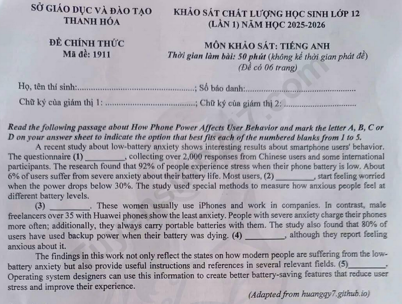>>> Xem thêm lời giải chi tiết các đề thi thử Tốt nghiệp THPT 2026 môn Anh của các Sở GD, các trường THPT trên cả nước TẠI ĐÂY Đáp án đề thi thử tốt nghiệp THPT 2026 môn Anh - Sở GD Thanh Hóa lần 1