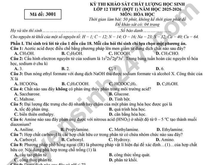 >>> Xem thêm lời giải chi tiết các đề thi thử Tốt nghiệp THPT 2026 môn Hóa của các Sở GD, các trường THPT trên cả nước TẠI ĐÂY Theo TTHN 🔥 2K8 CHÚ Ý! LUYỆN THI TN THPT - ĐÁNH GIÁ NĂNG LỰC - ĐÁNH GIÁ TƯ DUY!