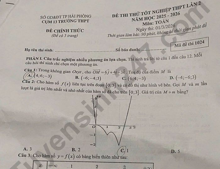 >>> Xem thêm lời giải chi tiết các đề thi thử Tốt nghiệp THPT 2026 môn Toán của các Sở GD, các trường THPT trên cả nước TẠI ĐÂY Theo TTHN 🔥 2K8 CHÚ Ý! LUYỆN THI TN THPT - ĐÁNH GIÁ NĂNG LỰC - ĐÁNH GIÁ TƯ DUY!