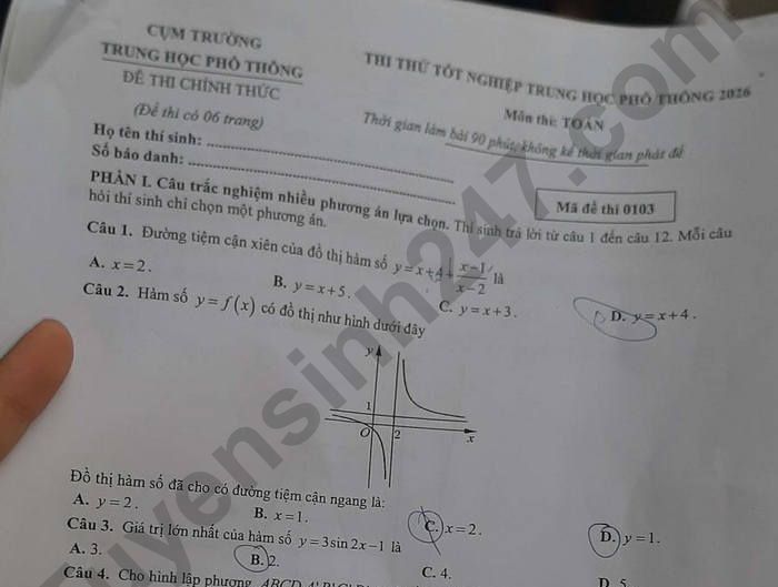 >>> Xem thêm lời giải chi tiết các đề thi thử Tốt nghiệp THPT 2026 môn Toán của các Sở GD, các trường THPT trên cả nước TẠI ĐÂY Theo TTHN 🔥 2K8 CHÚ Ý! LUYỆN THI TN THPT - ĐÁNH GIÁ NĂNG LỰC - ĐÁNH GIÁ TƯ DUY!