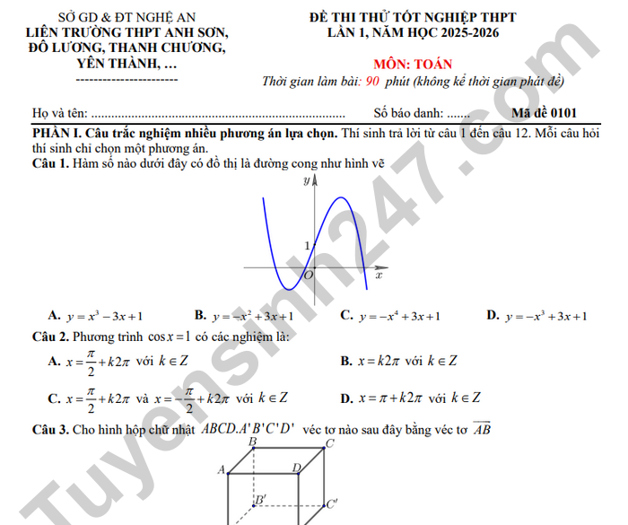 >>> Xem thêm lời giải chi tiết các đề thi thử Tốt nghiệp THPT 2026 môn Toán của các Sở GD, các trường THPT trên cả nước TẠI ĐÂY Theo TTHN 🔥 2K8 CHÚ Ý! LUYỆN THI TN THPT - ĐÁNH GIÁ NĂNG LỰC - ĐÁNH GIÁ TƯ DUY!
