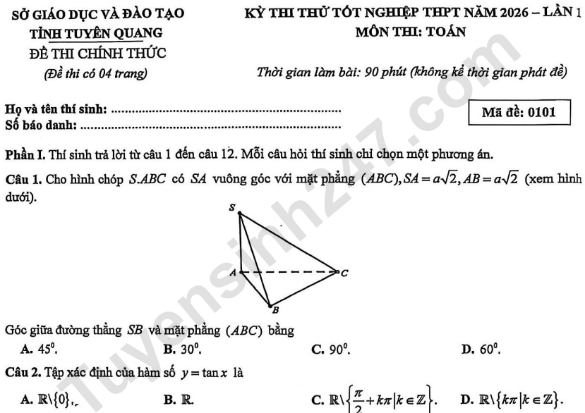 >>> Xem thêm lời giải chi tiết các đề thi thử Tốt nghiệp THPT 2026 môn Toán của các Sở GD, các trường THPT trên cả nước TẠI ĐÂY Theo TTHN 🔥 2K9 CHÚ Ý! LUYỆN THI TN THPT - ĐÁNH GIÁ NĂNG LỰC - ĐÁNH GIÁ TƯ DUY!