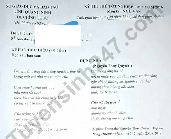 Đề thi thử tốt nghiệp THPT 2026 môn Văn - Sở GD Quảng Ninh