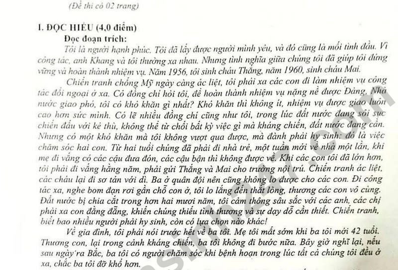Câu 1 (2,0 điểm) Anh/Chị hãy viết đoạn văn (khoảng 200 chữ) trình bày cảm nhận về nhân vật tôi trong đoạn trích ở phần Đọc hiểu.