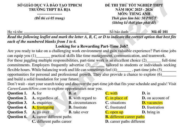 >>> Xem thêm lời giải chi tiết các đề thi thử Tốt nghiệp THPT 2026 môn Anh của các Sở GD, các trường THPT trên cả nước TẠI ĐÂY Theo TTHN 🔥 2K9 CHÚ Ý! LUYỆN THI TN THPT - ĐÁNH GIÁ NĂNG LỰC - ĐÁNH GIÁ TƯ DUY!