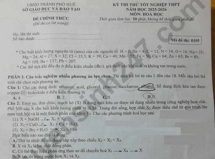 >>> Xem thêm lời giải chi tiết các đề thi thử Tốt nghiệp THPT 2026 môn Hóa của các Sở GD, các trường THPT trên cả nước TẠI ĐÂY Theo TTHN 🔥 2K9 CHÚ Ý! LUYỆN THI TN THPT - ĐÁNH GIÁ NĂNG LỰC - ĐÁNH GIÁ TƯ DUY!